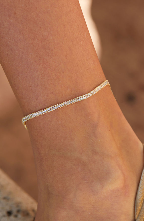 18K Gold Plated Bronze Double Chain Turquoise Anklet