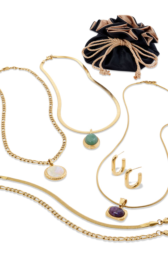 9 Piece Genuine Gemstone 18K Gold Plated Travel Jewelry Set