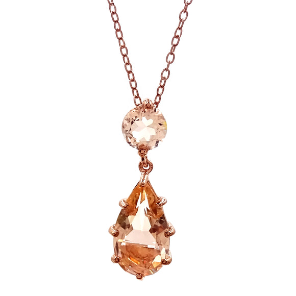 18K Rose Vermeil Morganite Crystal Drop Pendant With Chain