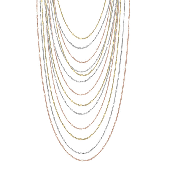 Multi-Layer Tri-Color Hammered Disc Fashion Necklace