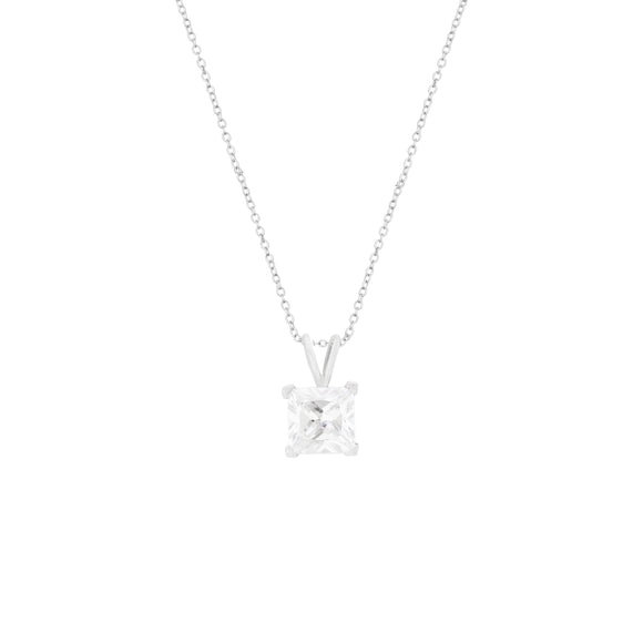 Solitare Princess-Cut CZ Sterling Silver Necklace