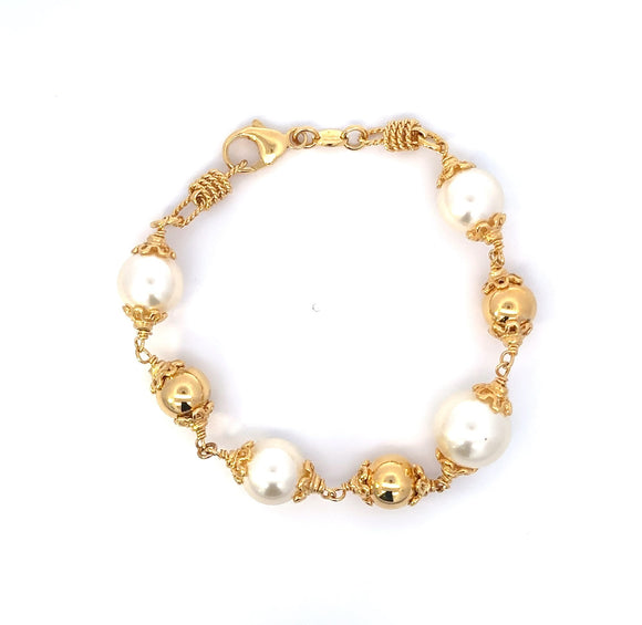18K Gold Plated Bronze Pearl Bead Bracelet