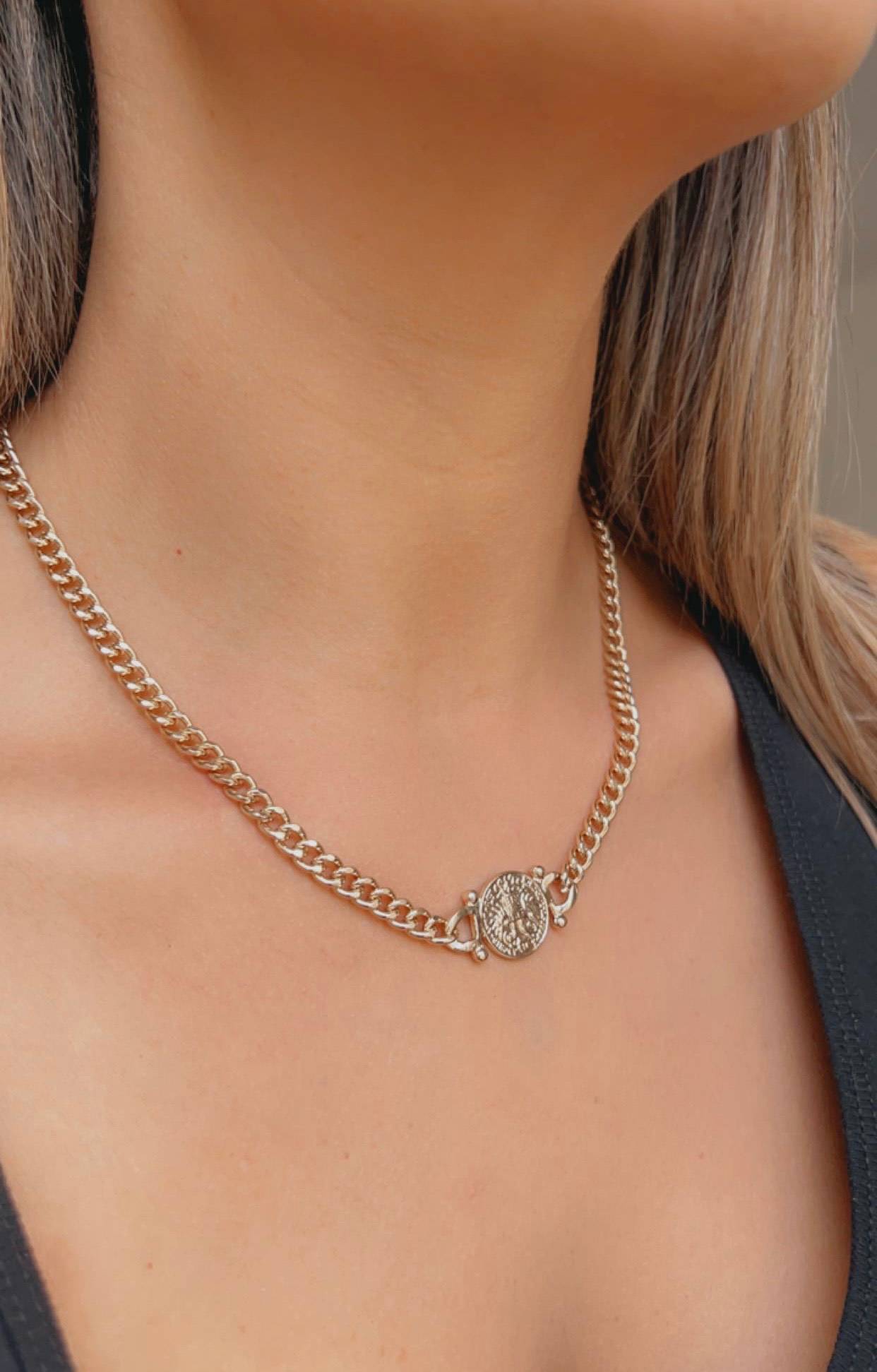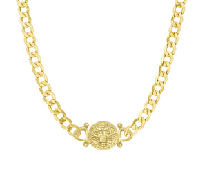 18K Gold Plated Bronze Petite Roman Coin Necklace on Cuban Link