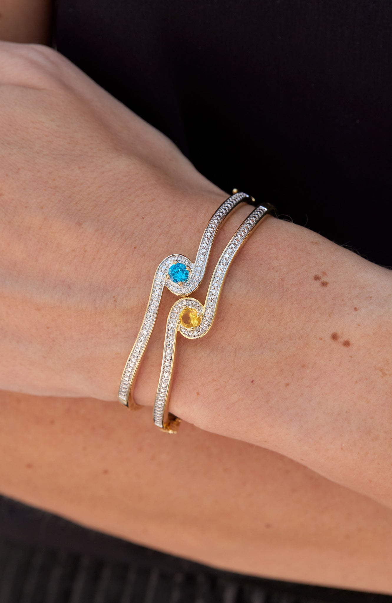 18K Gold Plated Birthstone Hinged Bangle Bracelets
