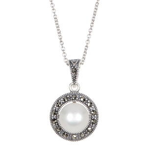 SS 925 Marcasite & Pearl Circle Pendant With Chain
