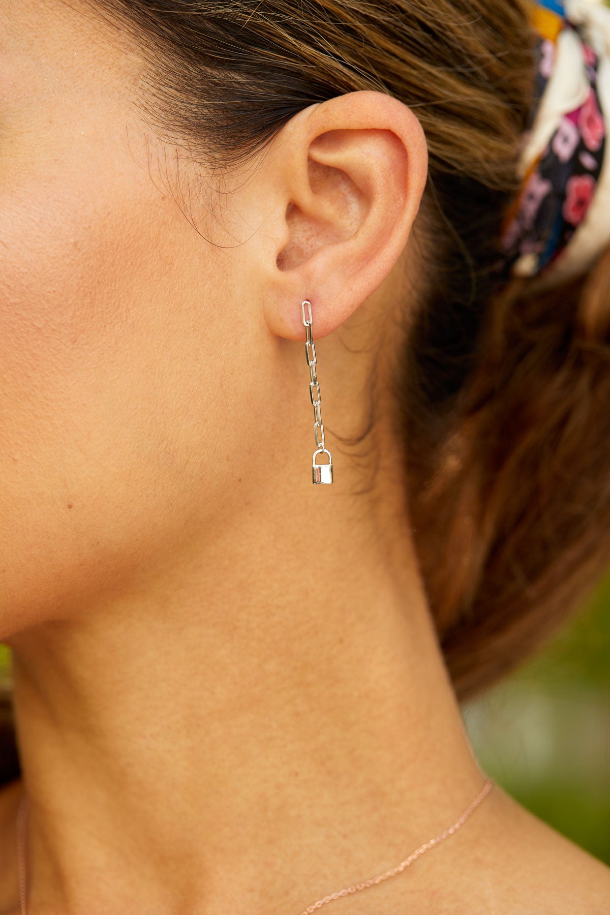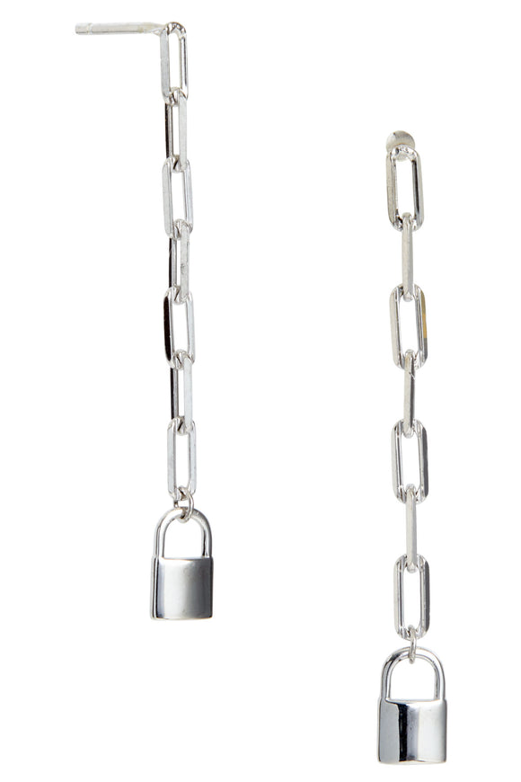 Sterling Silver Lock Drop Earrings